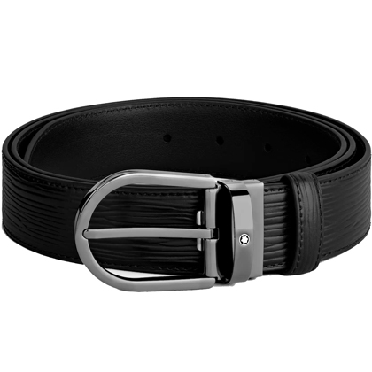 Черный кожаный ремень с подковообразной пряжкой 35мм от магазина премиальных ручек Premium Pens в Орле.