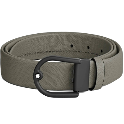 Кожаный ремень 35 мм из кожи серого цвета, пряжка в форме подковы от магазина премиальных ручек Premium Pens в Орле.